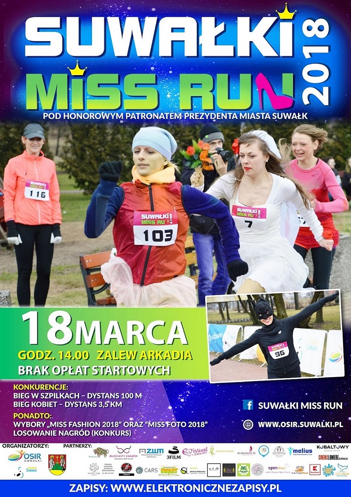 W tym roku Ośrodek Sportu i Rekreacji w Suwałkach, organizator Suwałki Miss Run 2018, wprowadza nową kategorię - Miss Foto. Dla zwyciężczyni, dla najbardziej fotogenicznej biegaczki przewidział atrakcyjne nagrody m.in. sesję zdjęciową, bilety do kina, trening personalny.