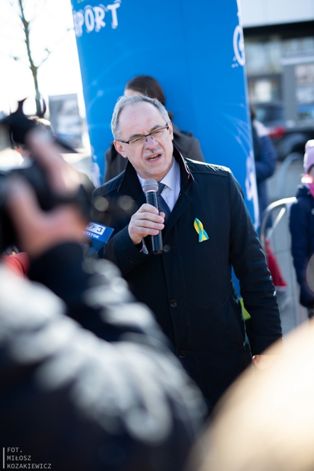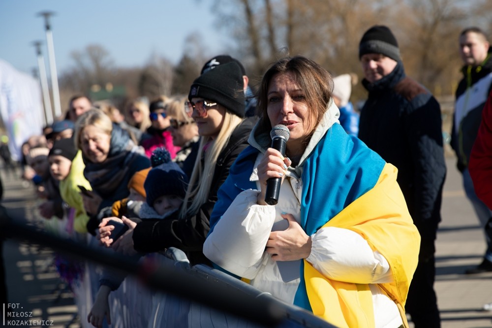 - Cieszę się, że nie porzuciliśmy organizacji tych biegów, które cechują się humorem czy to w szpilkach czy bez. Biegniemy jednak z pomocą, po pomoc. Potrzebujemy pomocy bardzo dużo. Niesiemy ją tu w Suwałkach uchodźcom, których mamy bardzo wielu. Wszystkie hotele i hostele wyznaczone do przyjmowania tych osób są już pełne. Dobrze, że uruchomiliśmy halę Ośrodka Sportu i Rekreacji. Od środy będziemy zawierali umowy i te osoby, które mają wolne lokum, wolne mieszkania zapraszamy do pomocy, do przyjmowania pod swój dach te osoby, które są w tej chwili w hotelach. Mimo tego co się dzieje musimy żyć normalnie i funkcjonować na co dzień. Myślę, że ta słoneczna pogoda zachęca nas wszystkich do tego, żeby wyjść na zewnątrz, być razem i wykazywać solidarność, tak jak dziś solidarnie biegamy. Nie chodzi tu o wygraną czy medale, a o piękną akcję, którą czynimy dziś w Suwałkach z myślą o Ukrainie - mówił Czesław Renkiewicz, prezydent Suwałk.