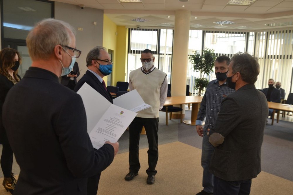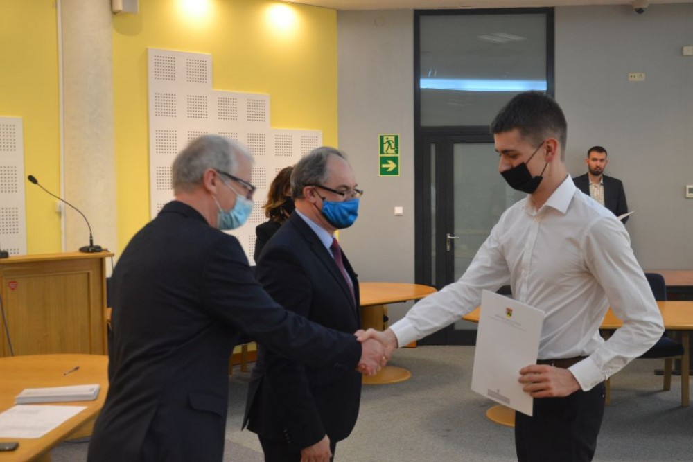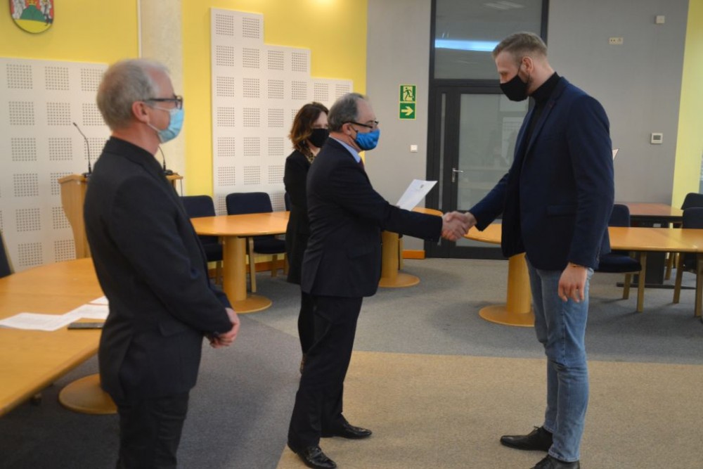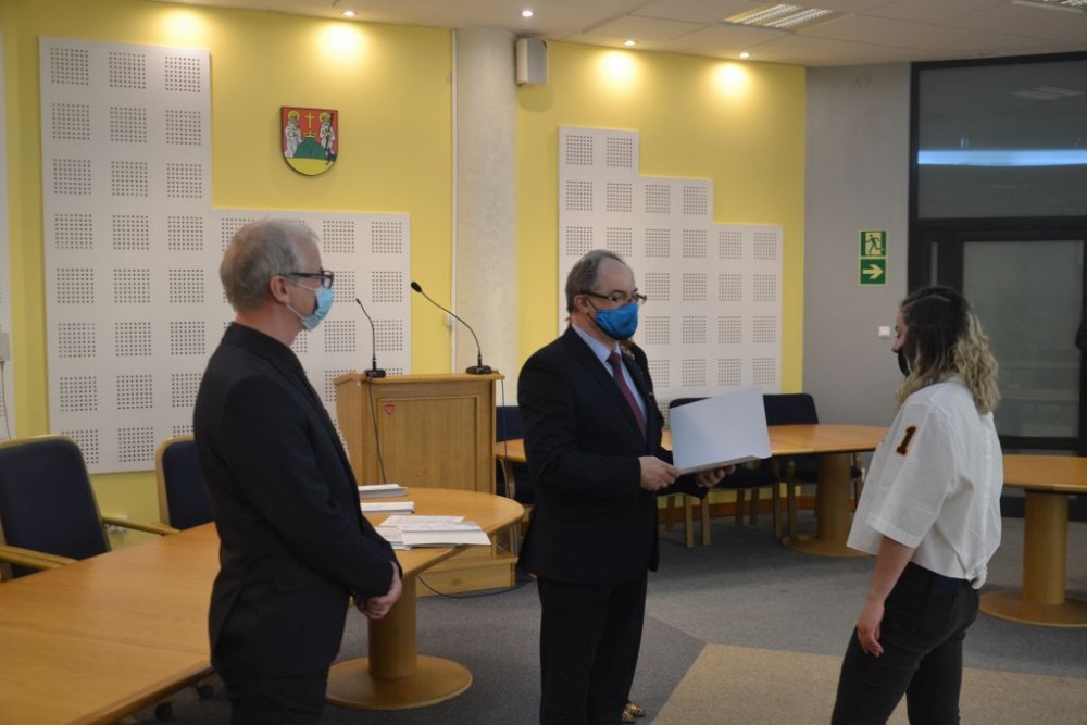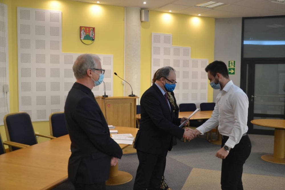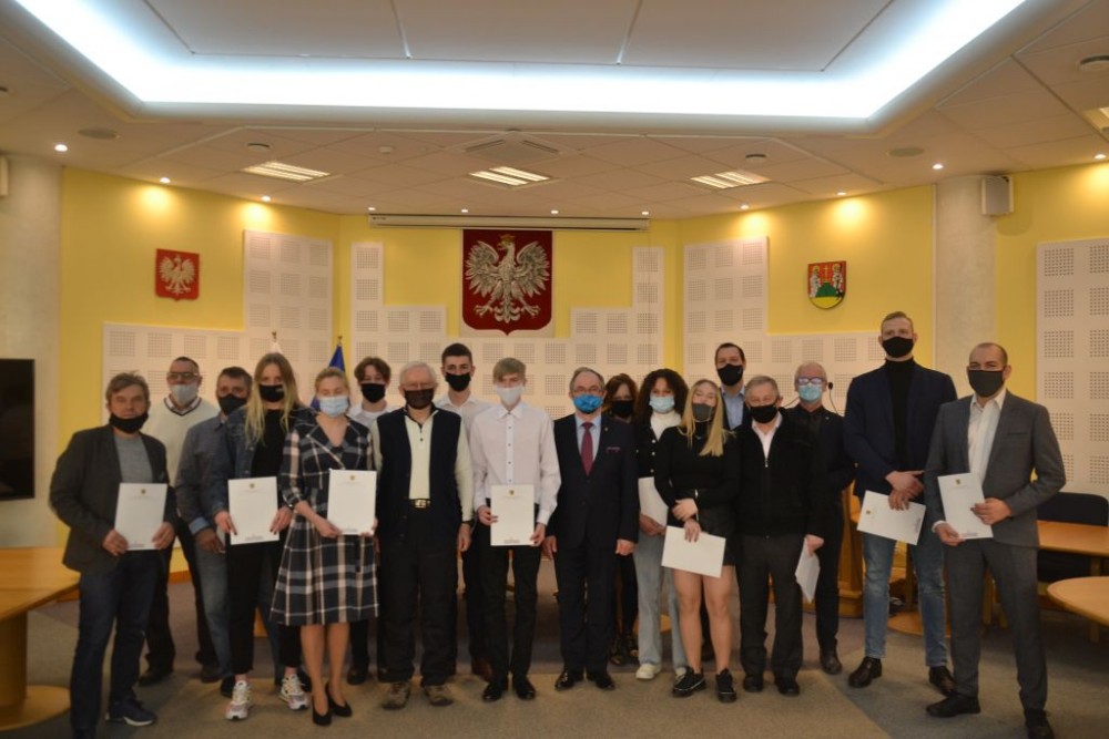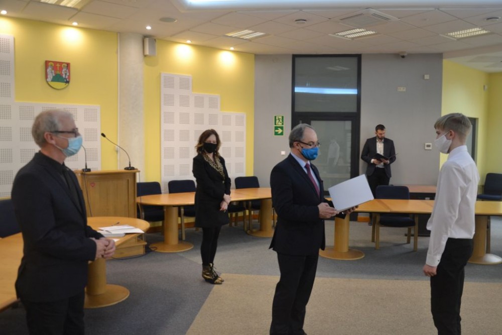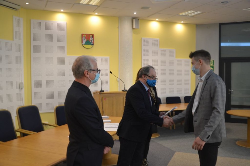 Czesław Renkiewicz, Prezydent Suwałk wspólnie z Markiem Zborowskim – Weychmanem, Radnym Rady Miejskiej wręczył stypendia i nagrody Miasta Suwałki za wyniki sportowe uzyskane w krajowym i międzynarodowym współzawodnictwie sportowym oraz wyróżniające się osiągnięcia w działalności sportowej na rzecz Miasta Suwałki w 2020 roku.