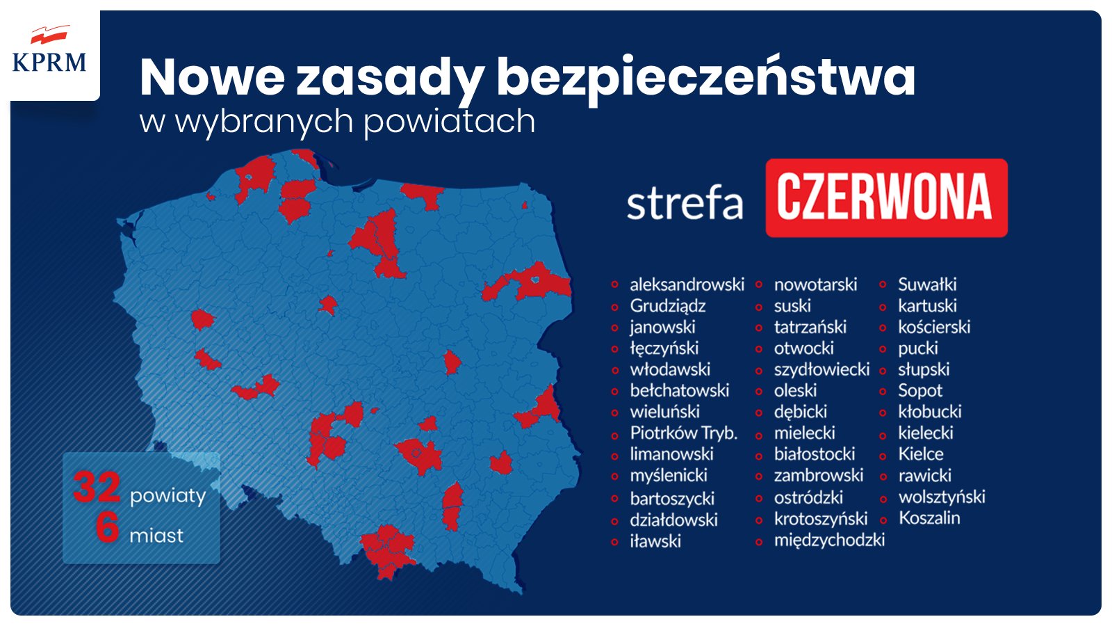 Oprócz miast i powiatów właczonych do czerwonej strefy, cała Polska od soboty będzie żółtą strefą.