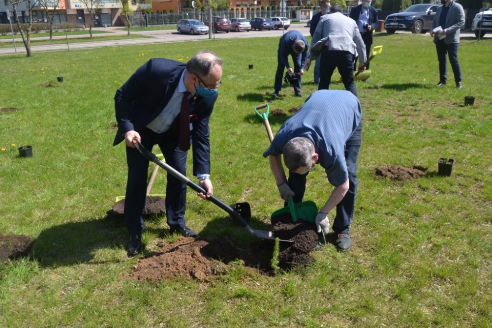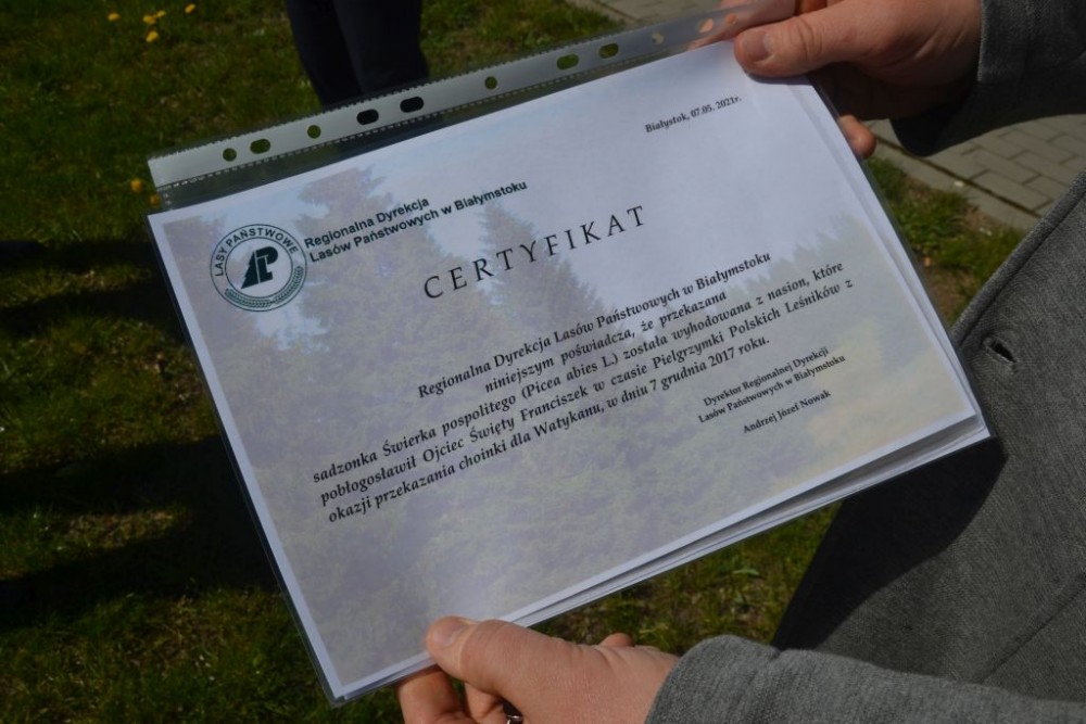 Na skwerze przy suwalskiej ulicy, której patronuje Jan Paweł II zasadzono w środę, 12 maja świerki, które wyhodowano z nasion, pobłogosławionych przez Ojca Świętego Franciszka w czasie Pielgrzymki Polskich Leśników z okazji przekazania choinki dla Watykanu w 2017 r.