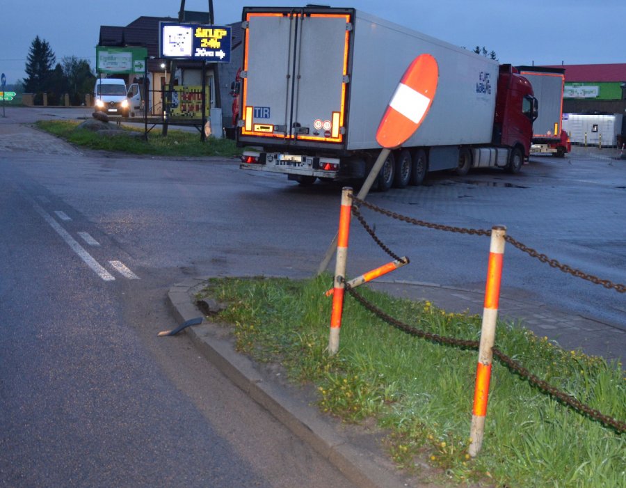 Suwalscy policjanci zatrzymali kierowcę ciężarówki, który najechał na znak drogowy i barierę ochronną. Okazało się, że 51-letni obywatel Bułgarii był pijany.