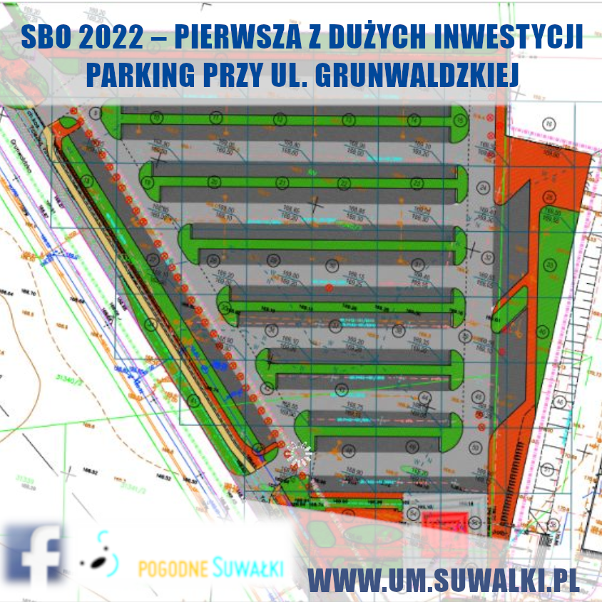 Projekt pod nazwÄ… Budowa parkingu przy ul. Grunwaldzkiej do obsÅ‚ugi targowiska, cmentarza i obiektów OSiR uzyskaÅ‚ 2425 gÅ‚osów i zajÄ…Å‚ 1 miejsce w gÅ‚osowaniu na Suwalski Budżet Obywatelski 2022.