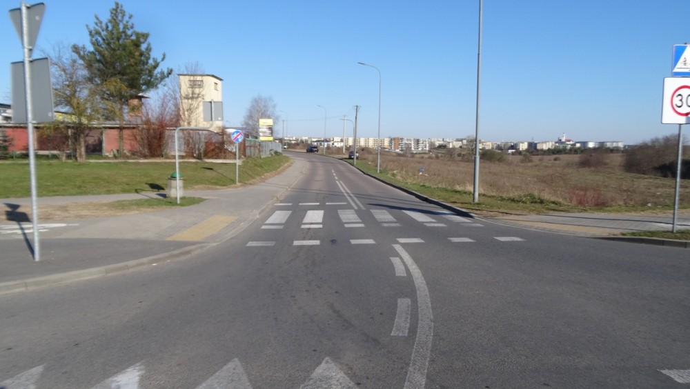 - Po stronie wschodniej ciąg pieszo - rowerowy o szerokości 3 metrów, oddzielony od jezdni zieleńcem o szerokości 2 metrów. Zjazdy i chodniki z kostki betonowej o kolorze szarym i grafitowym.