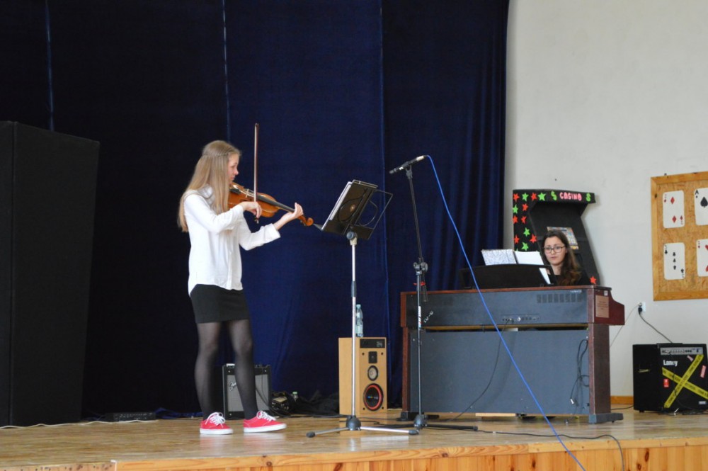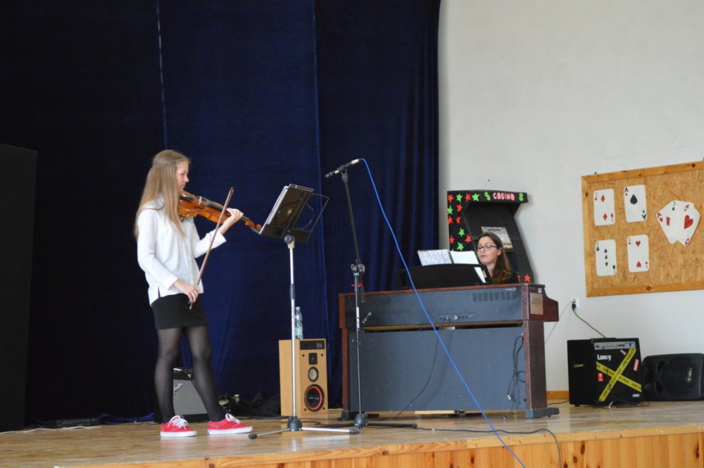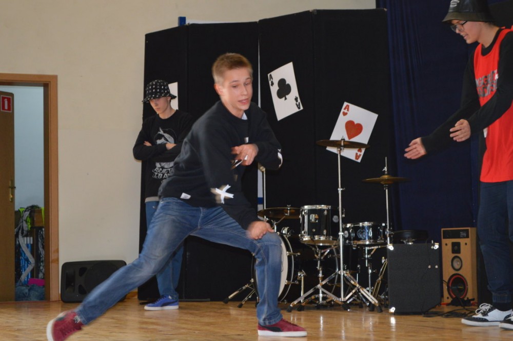 W szkole odbył się konkurs talentów. Swoje umiejętności zaprezentowali wokaliści, muzycy i tancerze i żongler.