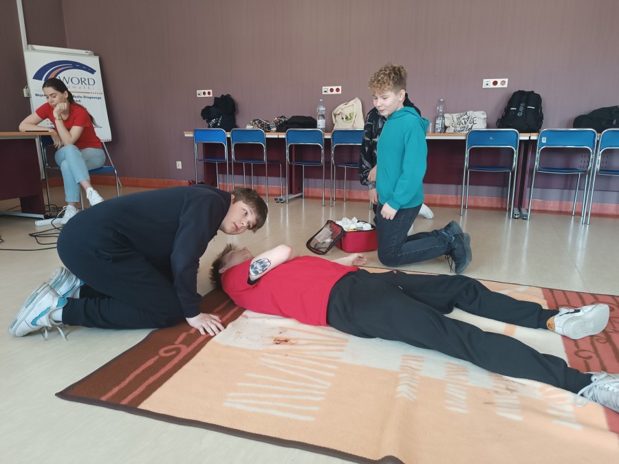 2. Udzielanie pierwszej pomocy – konkurs polegajÄ…cy na sprawdzeniu prawidÅ‚owych zachowaÅ„ z zakresu udzielania pierwszej pomocy (inscenizacja wypadku z osobÄ… poszkodowanÄ…).