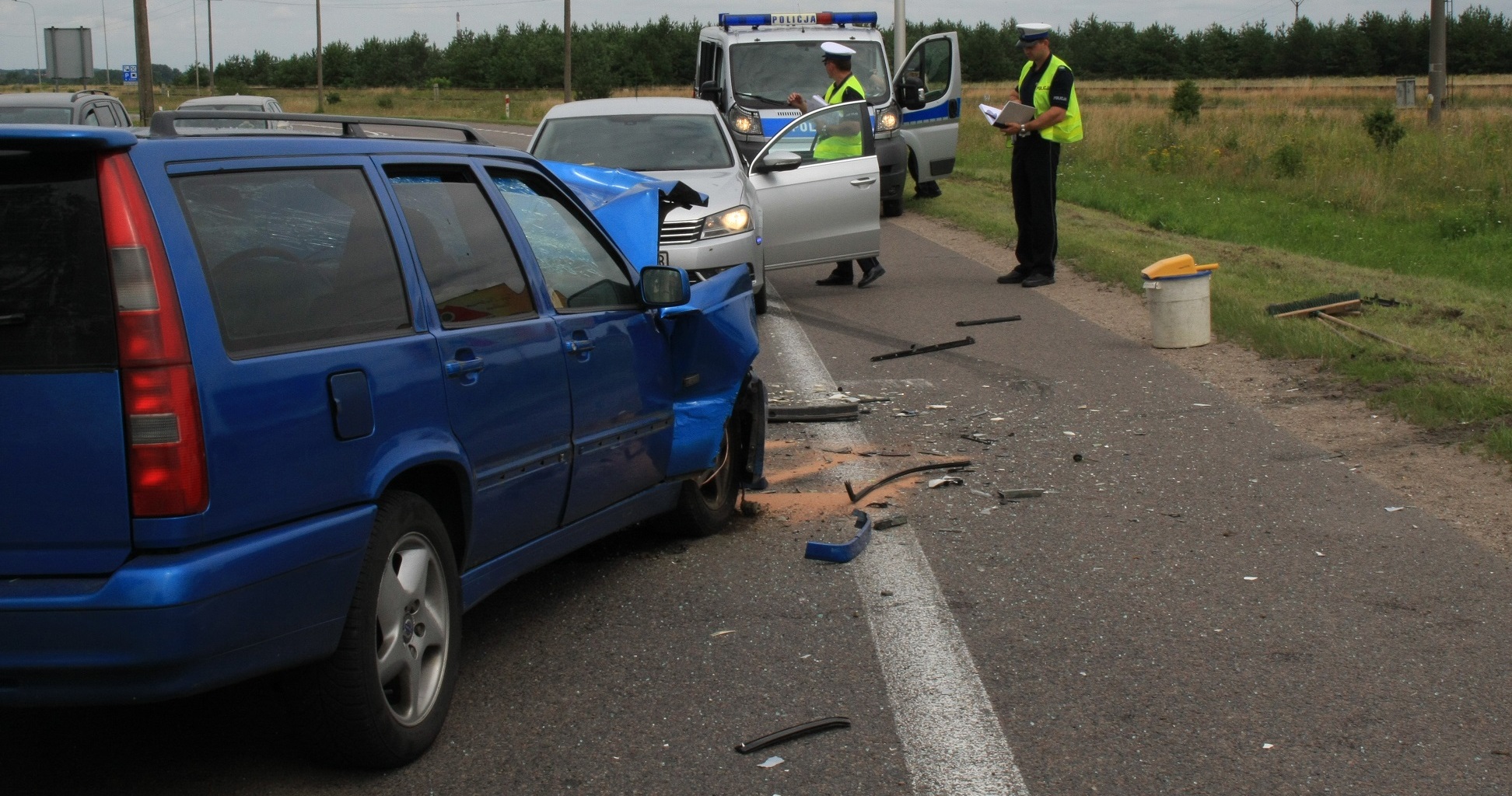 - KierujÄ…cy fordem mustangiem jechaÅ‚ w kierunku ulicy Wojska Polskiego. Na Å‚uku drogi w prawo straciÅ‚ panowanie nad pojazdem, zjechaÅ‚ na przeciwlegÅ‚y pas ruchu i zderzyÅ‚ siÄ™ z jadÄ…cym w kierunku przeciwnym samochodem volvo – informuje Eliza Sawko, oficer prasowy policji w SuwaÅ‚kach.