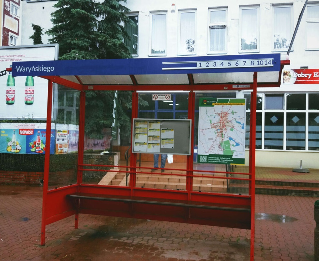 Teraz zewnętrzne oznakowanie wiat przystankowych ma być widoczne dla pasażerów podróżujących autobusami z pozycji zajmowanego miejsca.