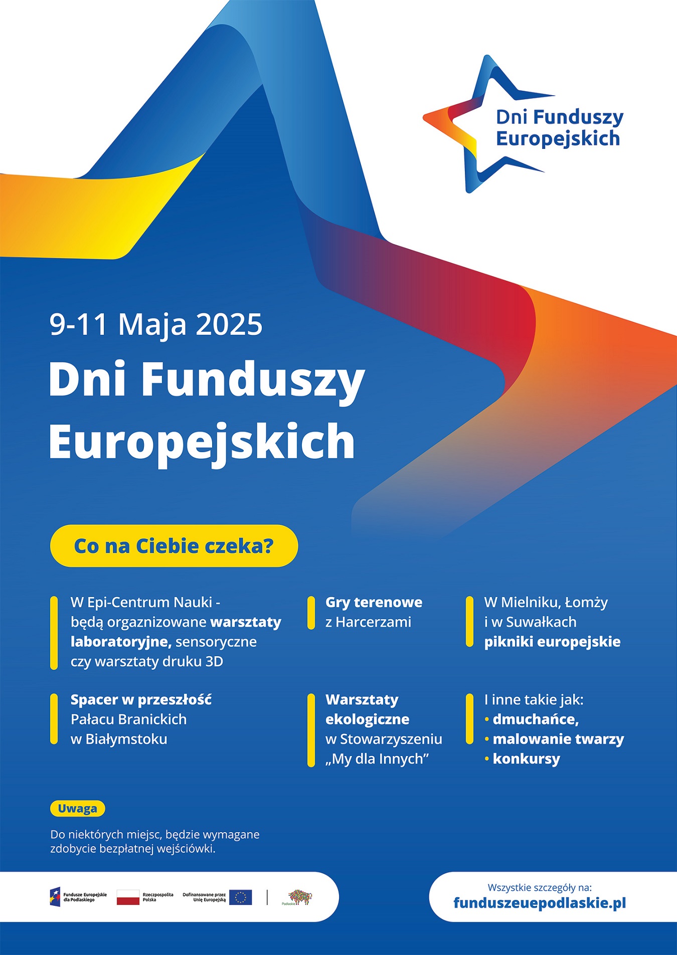 Uwaga! W niektórych miejscach będą wymagane wejściówki, a liczba miejsc jest ograniczona. Szczegóły wydarzenia znajdziesz na stronie: funduszeuepodlaskie.pl/dnifunduszy.