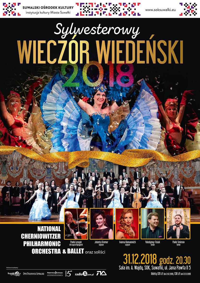 W ostatni wieczór roku, Suwalski Ośrodek Kultury zaprasza w magiczną podróż do romantycznego i roztańczonego Wiednia, magicznego świata operetki, gdzie rozbrzmiewać będą najpiękniejsze arie, duety, walce i polki Johanna Straussa, gdzie w pełnych zachwytu dźwiękach usłyszeć będzie można szelest długich sukien, huk rozlewanego szampana, czy miłosnych westchnień w alkowach. Znamienite kompozycje w wykonaniu National Cherniowitzer Philharmonic Orchestra pod batutą Pavlo Lesiuka oraz solistów cherniowitzkiej i odeskiej sceny operetkowej i operowej przeniosą nas do roztańczonych Austro-Węgier Franciszka Józefa.