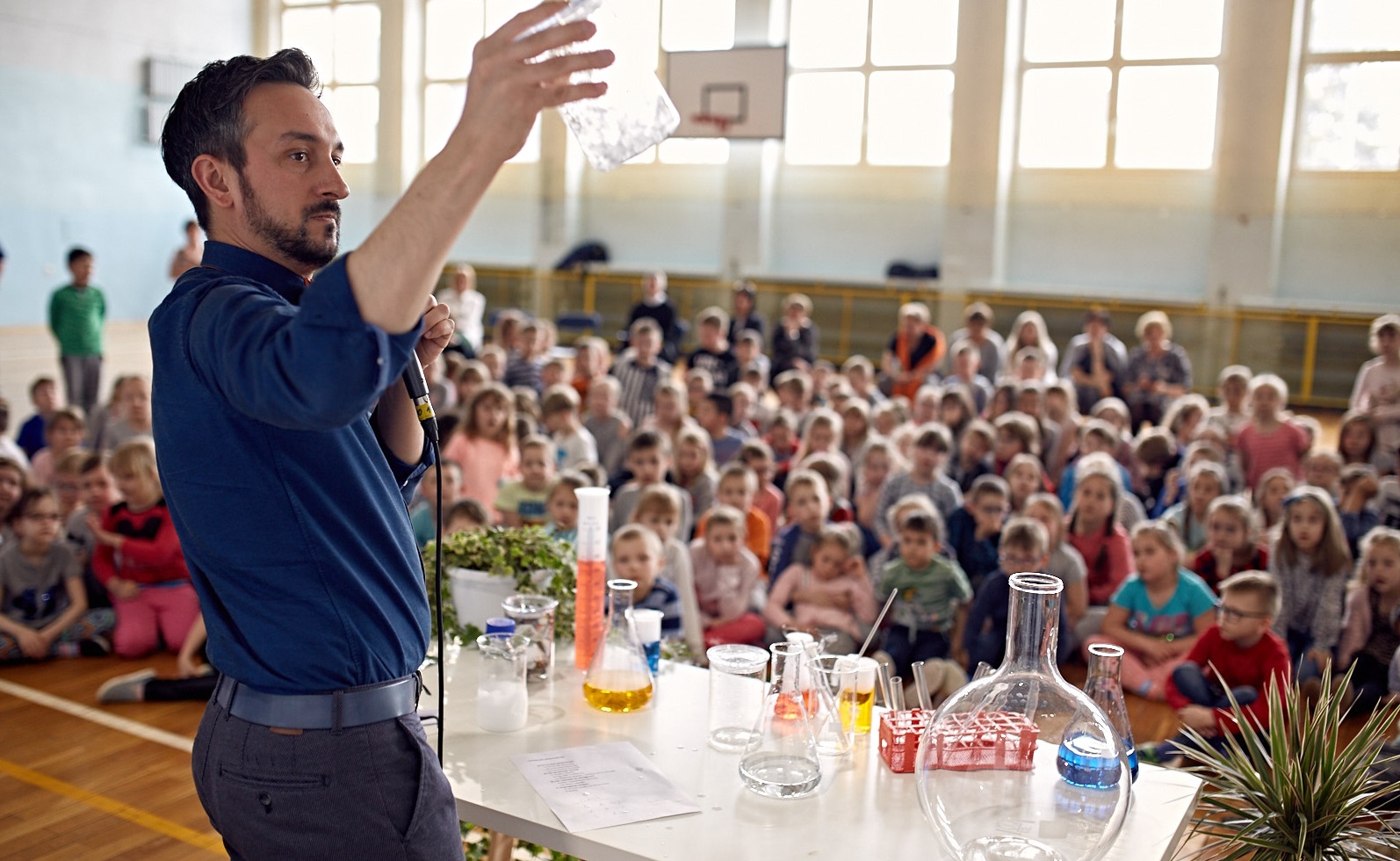 W sali gimnastycznej Publicznej Szkoły Podstawowej nr 2 im. Aleksandry Piłsudskiej w Suwałkach zebrało się ponad 250 dzieci, które z zapartym tchem obserwowały eksperymenty naukowe o tematyce ekologicznej. Zajęcia prowadził znany dziennikarz telewizyjny i popularyzator nauki Radek Brzózka. Prezentowane doświadczenia dotyczyły zjawiska smogu i są elementem ogólnopolskiej kampanii edukacyjnej „Rodzice i dzieci, Powietrze bez śmieci”.