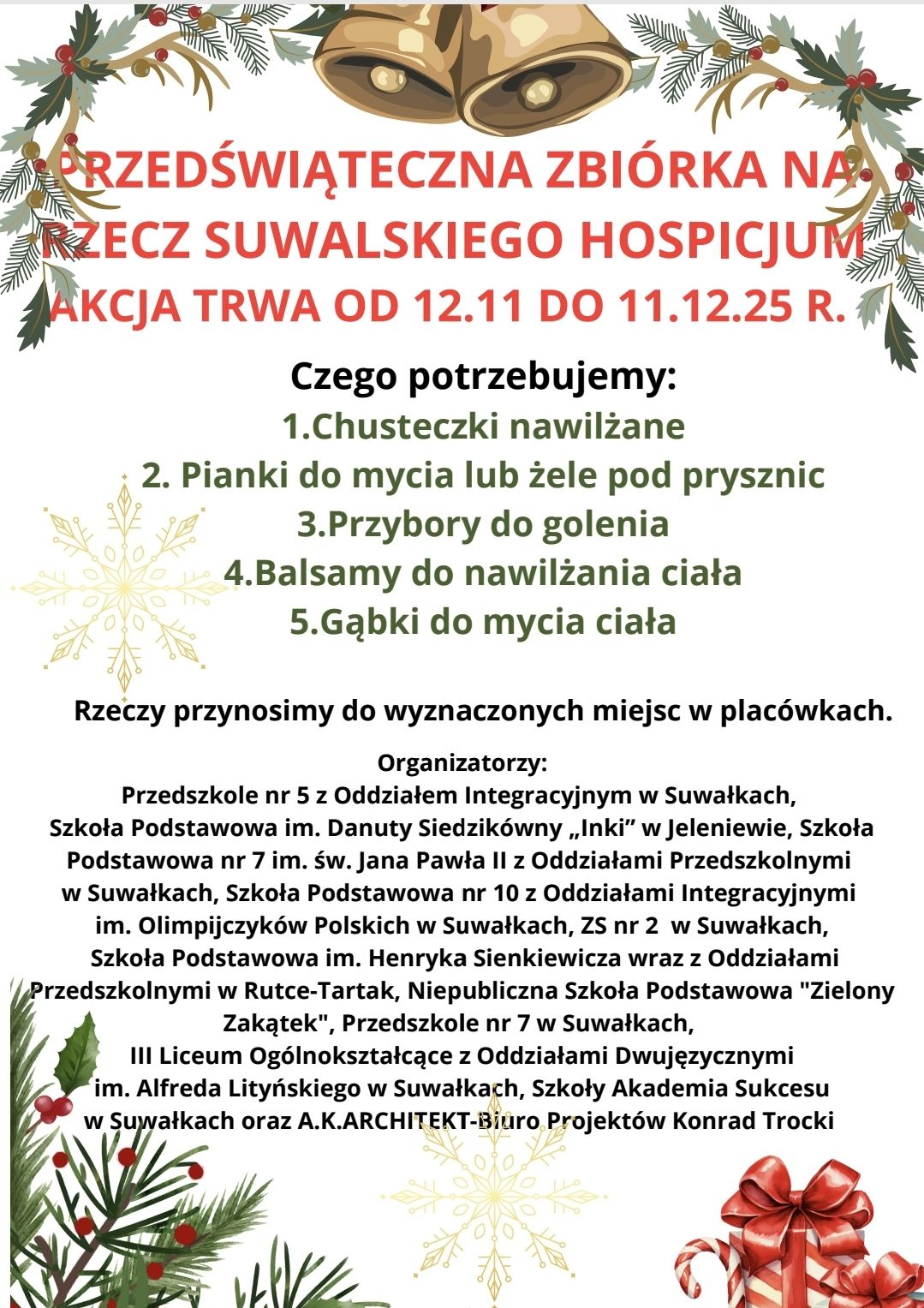 Szkoła Podstawowa im. Henryka Sienkiewicza w Rutce-Tartak wraz z Oddziałami Przedszkolnymi włącza się w akcję ,,Przedświąteczna zbiórka na rzecz Suwalskiego Hospicjum".