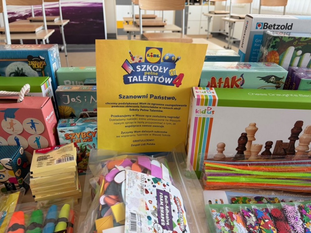 - Z radością informujemy, że nasza szkoła znalazła się w gronie tylko 5 szkół w Polsce, które otrzymały pulę 30 000 talenciaków. Dzięki tej nagrodzie, zaangażowaniu uczniów, rodziców i nauczycieli udało nam się w sumie zebrać imponującą liczbę 31 707 talenciaków! Zebrane talenciaki zostały wymienione na gry planszowe i edukacyjne, materiały biurowe i papiernicze, pufy oraz sprzęt sportowy. Dziękujemy całej społeczności szkolnej za zaangażowanie - informuje i dziękuje dyrekcja Szkoły.