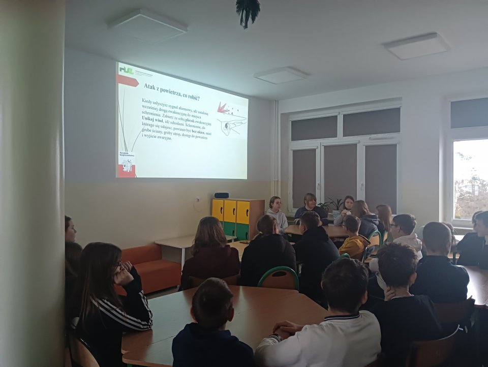 Celem zajęć było zapoznanie młodzieży z realizacją zadań z zakresu ochrony ludności oraz obrony cywilnej.