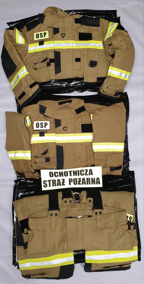 Zakupiono 4 komplety najnowszego ubrania specjalnego renomowanej firmy Ballyclare Limited, które skÅ‚ada siÄ™ z kurtki ciężkiej, kurtki lekkiej oraz spodni.