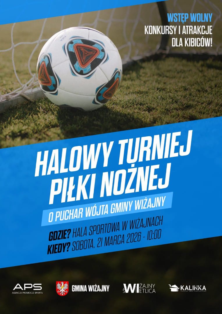 W najbliższą sobotę, 21 marca o godz. 10:00 rozpocznie się I Halowy Turniej Piłki Nożnej o Puchar Wójta Gminy Wiżajny.
