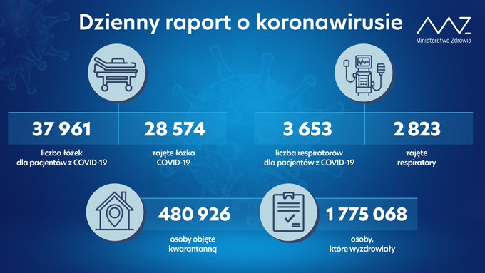 W Polsce liczba zakażonych od początku pandemii wynosi 2 221 725. Zmarło 51 753 osób, wyzdrowiało 1 775 068.