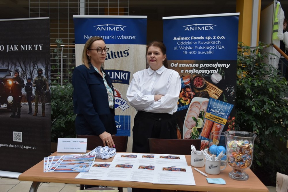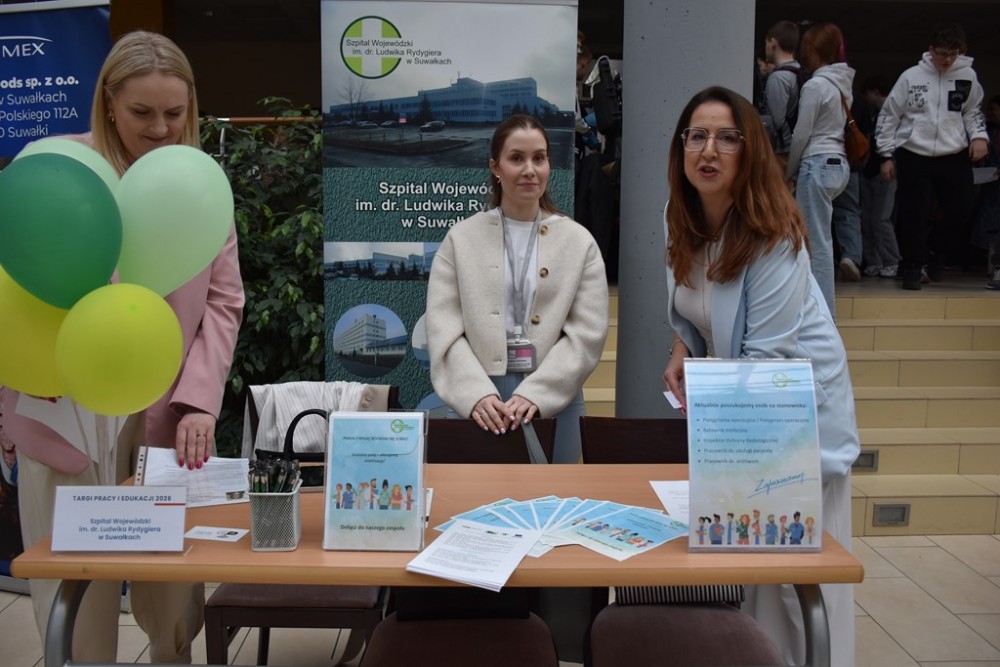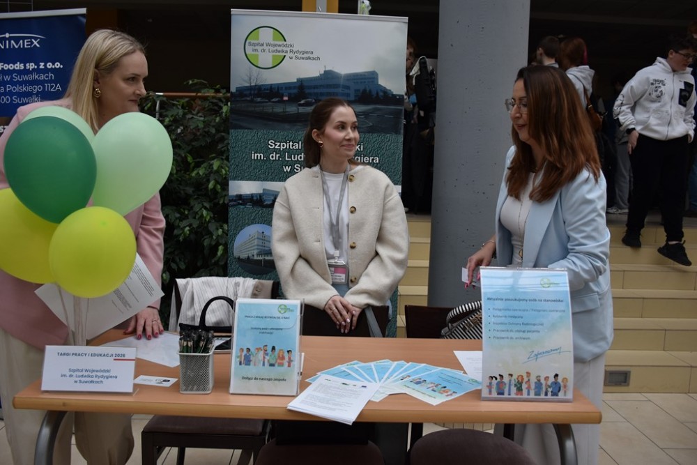W patio i salach Państwowej Uczelni Zawodowej w Suwałkach w czwartek, 16 kwietnia obyła się kolejna edycja jednego z najważniejszych wydarzeń łączących świat nauki, biznesu i rynku pracy, czyli Targi Pracy i Edukacji 2026. To duże przedsięwzięcie razem z Uczelnią organizują Powiatowy Urząd Pracy w Suwałkach, Wojewódzki Urząd Pracy w Białymstoku oraz Erasmus+