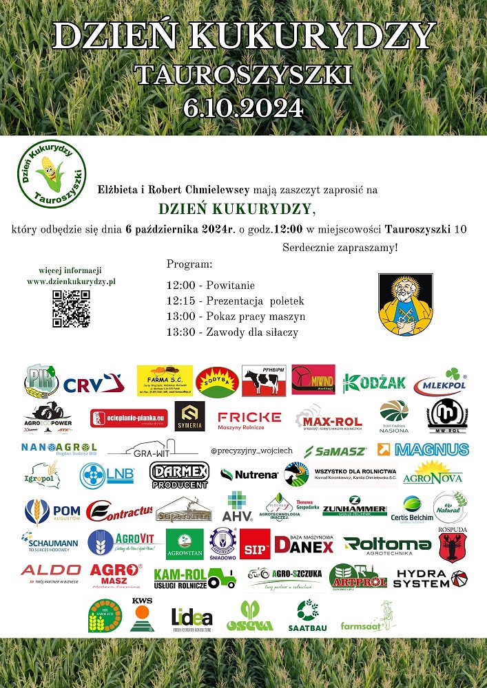 W niedzielę, 6 października w Tauroszyszkach, w gminie Puńsk, w gospodarstwie rolnym państwa Elżbiety i Roberta Chmielewskich będzie miał miejsce Dzień Kukurydzy. Początek o godz. 12.00.