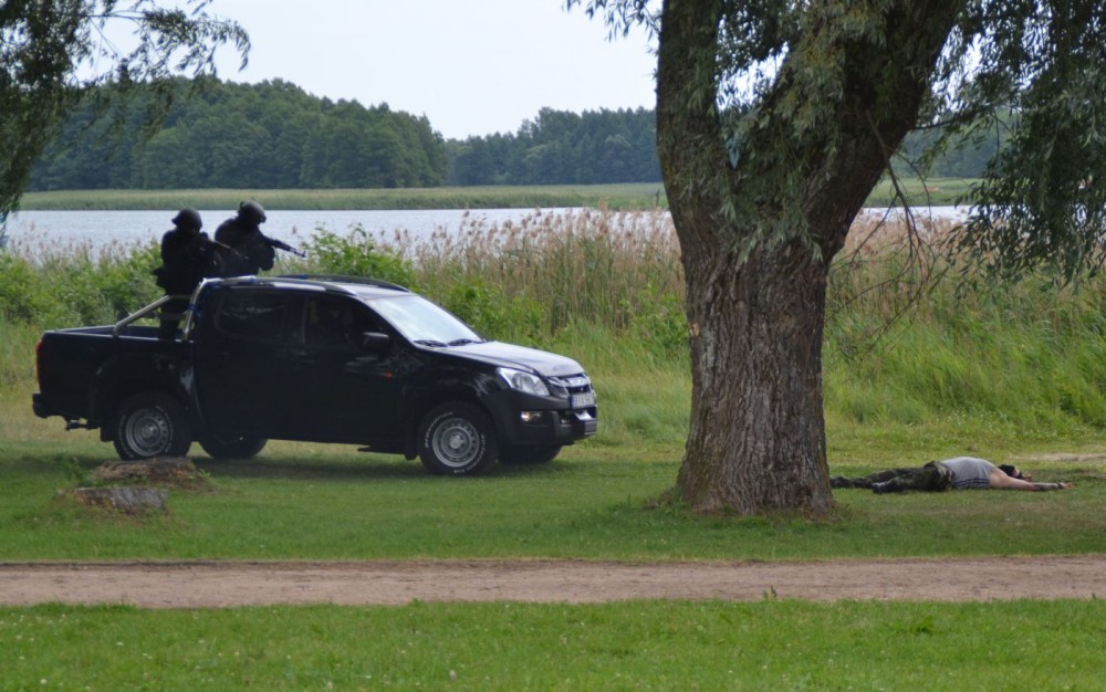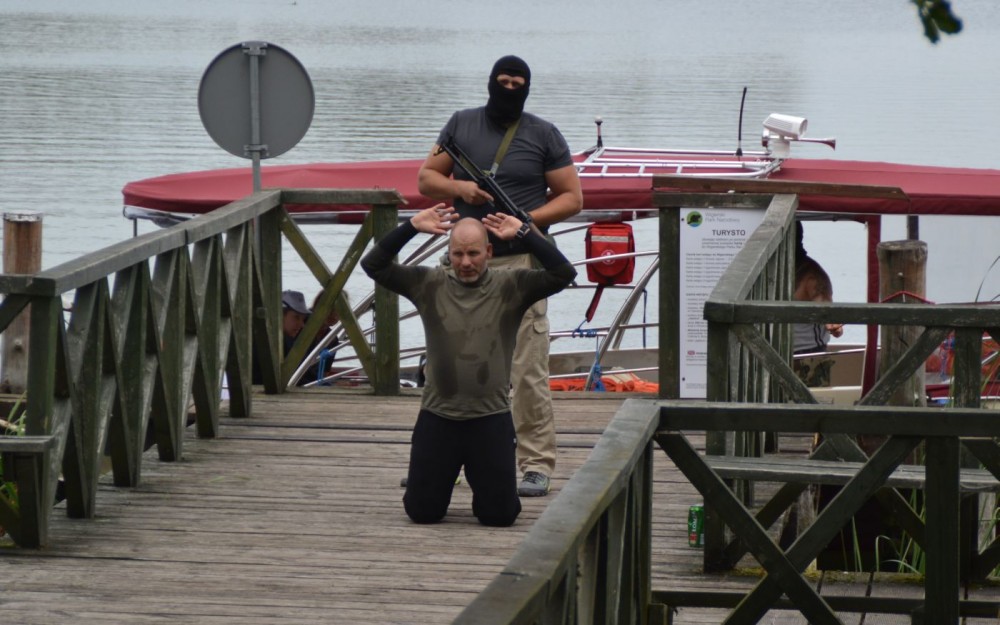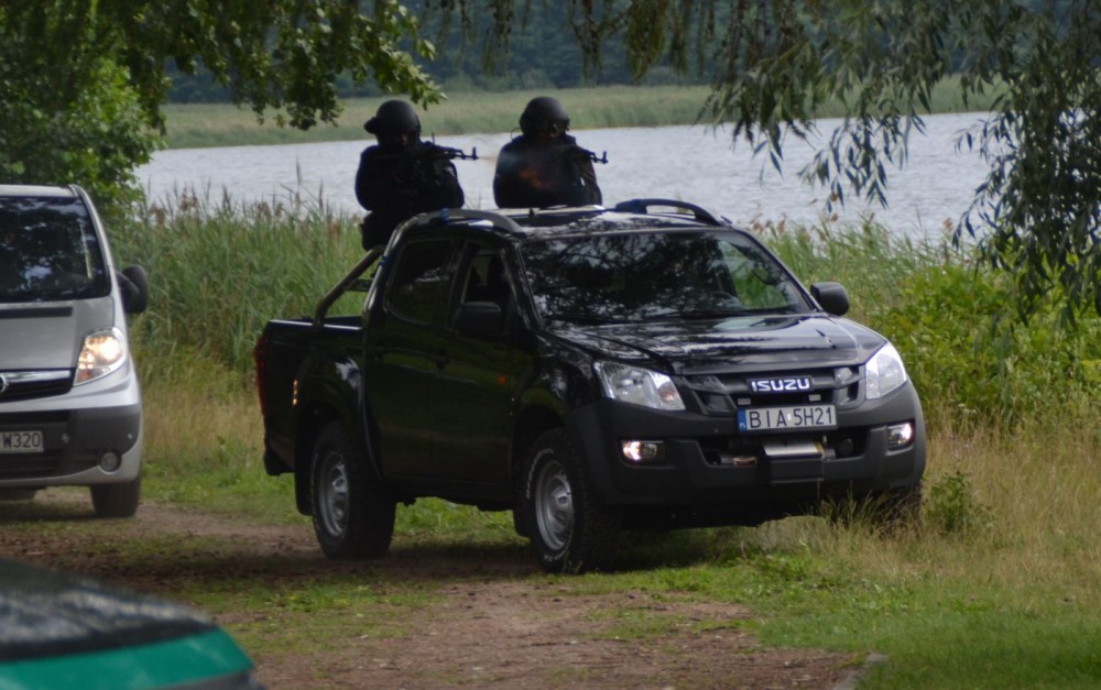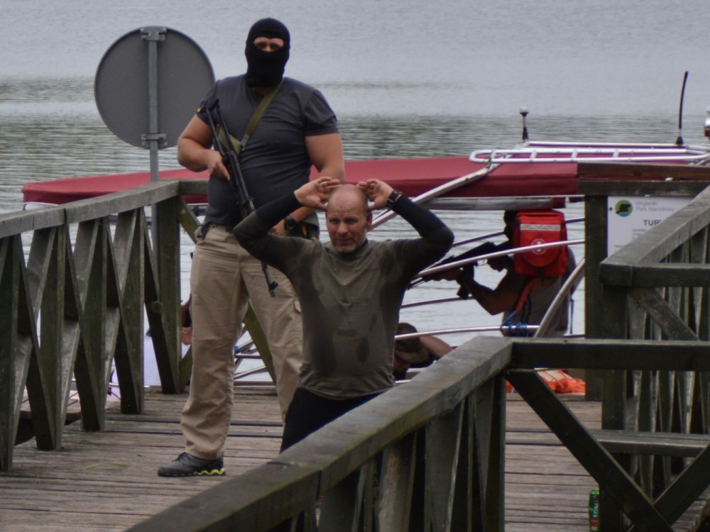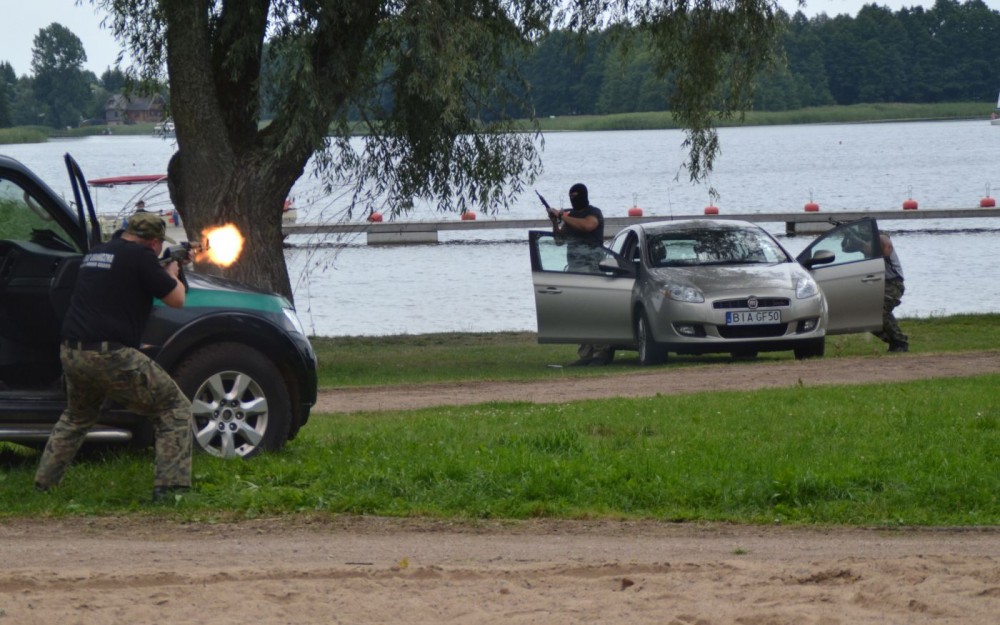 Osobowe auto nie zatrzymuje się do kontroli na przejściu granicznym w Ogrodnikach. Straż graniczna podejmuje pościg, a chwilę później wspiera ją w tym policja. Przestępcy uciekają w stronę klasztoru w Wigrach. Tam porzucają auto i porywają łódź z zakładnikami.