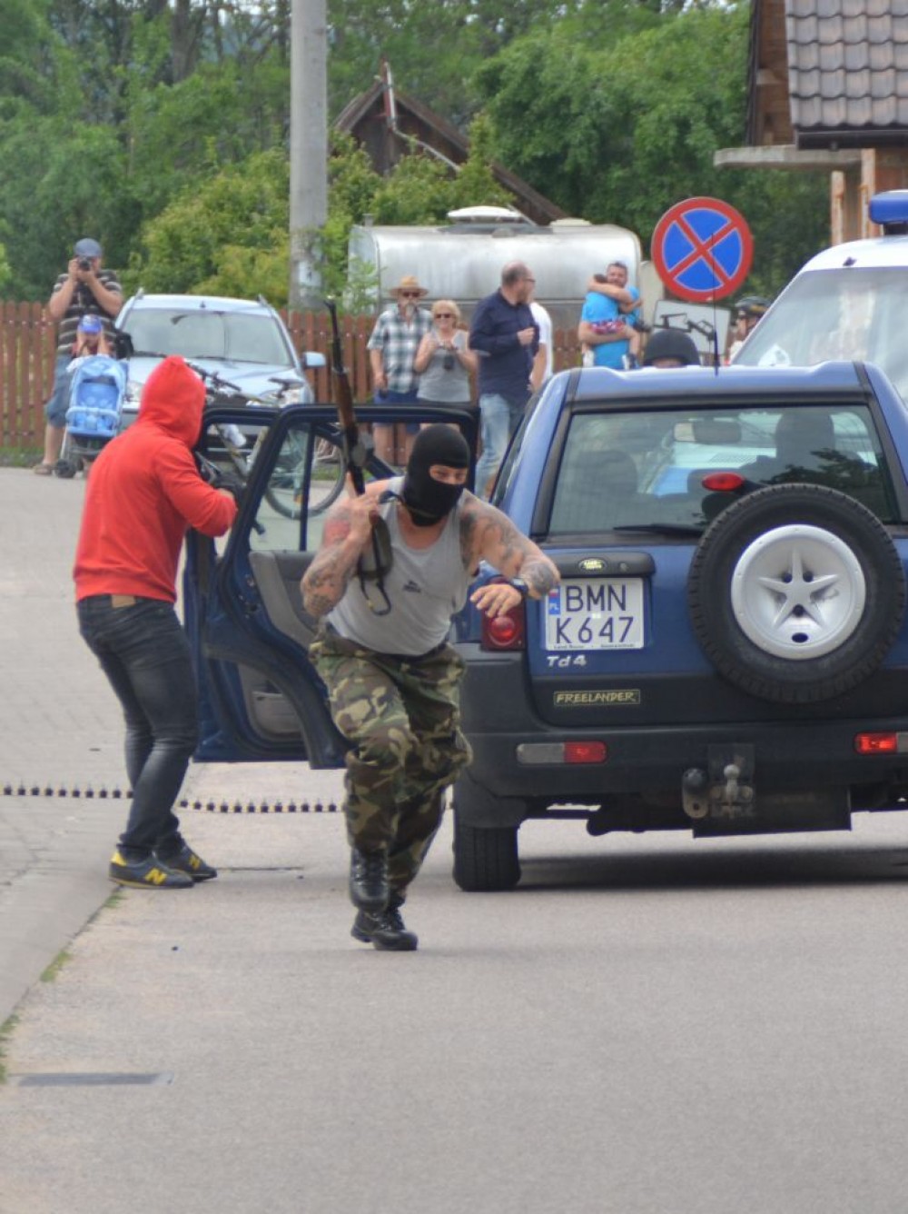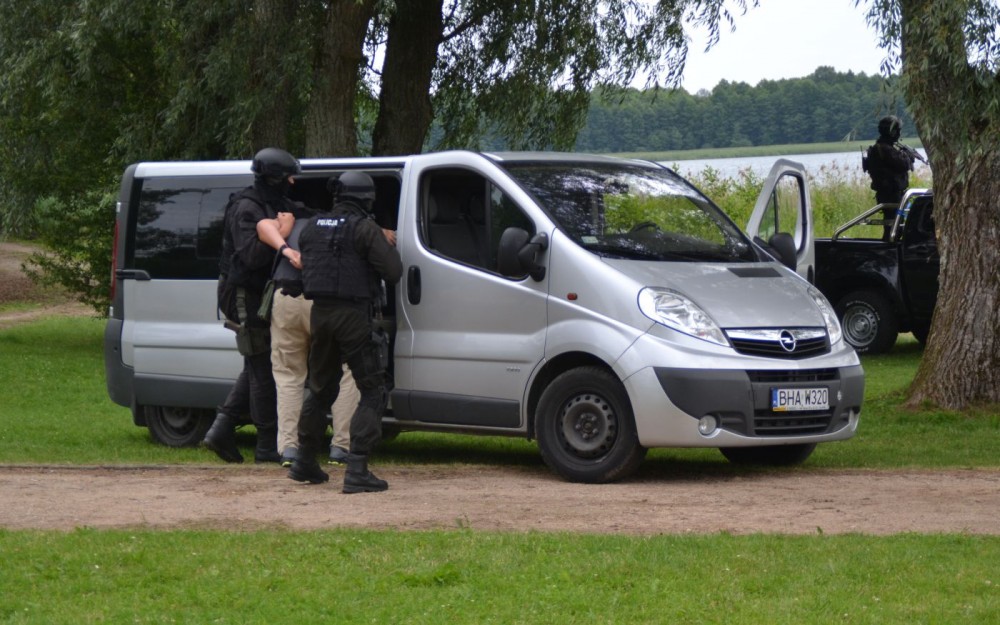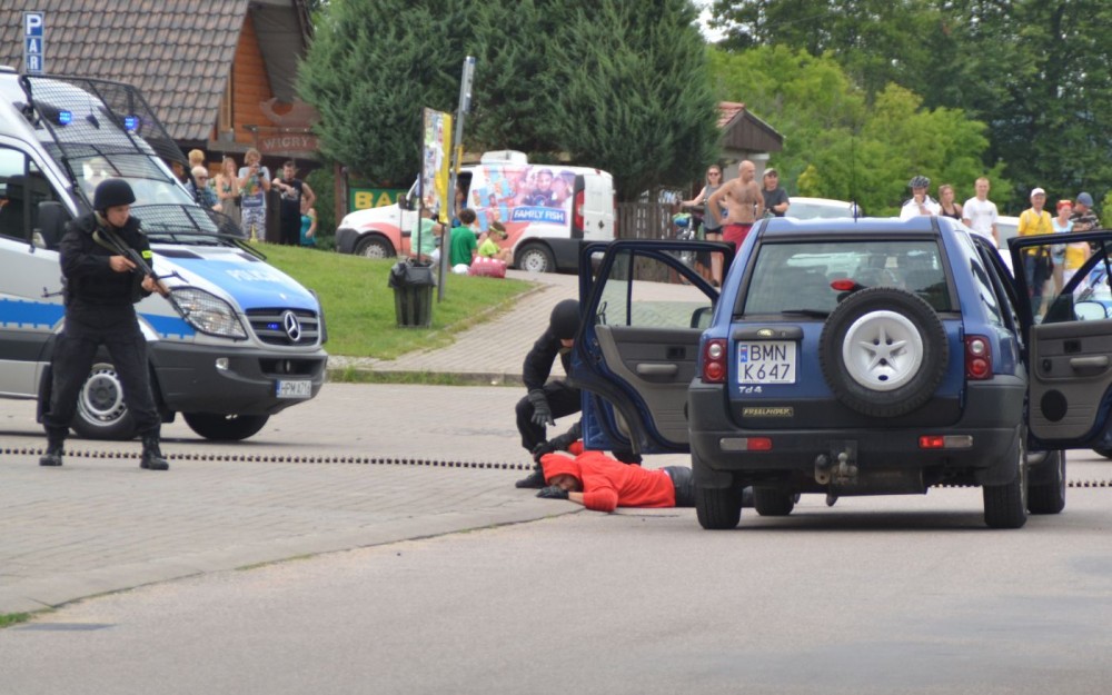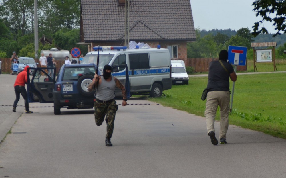 Osobowe auto nie zatrzymuje się do kontroli na przejściu granicznym w Ogrodnikach. Straż graniczna podejmuje pościg, a chwilę później wspiera ją w tym policja. Przestępcy uciekają w stronę klasztoru w Wigrach. Tam porzucają auto i porywają łódź z zakładnikami.