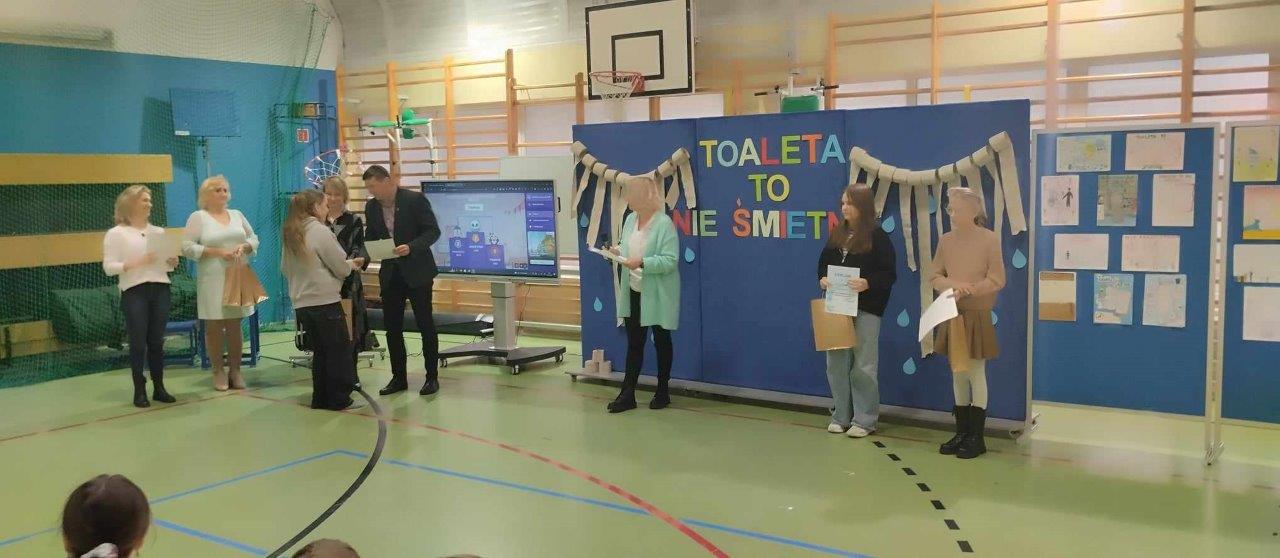 Głównym celem kampanii „Toaleta to nie śmietnik” jest zwrócenie uwagi na problemy związane z brakiem zapewnionego dostępu do urządzeń sanitarnych oraz do właściwego z nich korzystania. W Szkole Podstawowej im. Lotników Polskich w Płocicznie-Tartak odbyło się podsumowanie kampanii.
