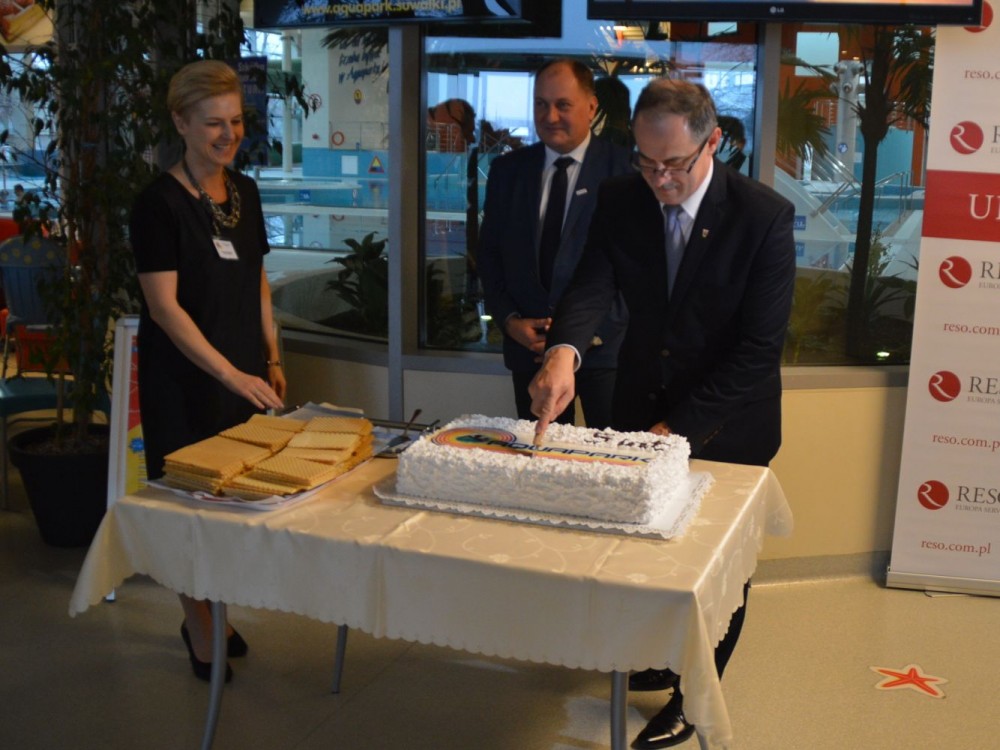 Obiekt przy ulicy Jana PawÅ‚a II rozpoczÄ™to budować w kwietniu. 2009 roku. Wykonawca poÅ›pieszyÅ‚ siÄ™ i oddaÅ‚ obiekt cztery miesiÄ…ce przed terminem. Obrotowe drzwi budynku zaczęły krÄ™cić siÄ™ dokÅ‚adnie pięć lat temu. Wtedy to z usÅ‚ug pÅ‚ywalni skorzystali pierwsi suwalczanie. Z tej okazji w poniedziaÅ‚kowe poÅ‚udnie kierownictwo Aquaparku czÄ™stowaÅ‚o klientów tortem.