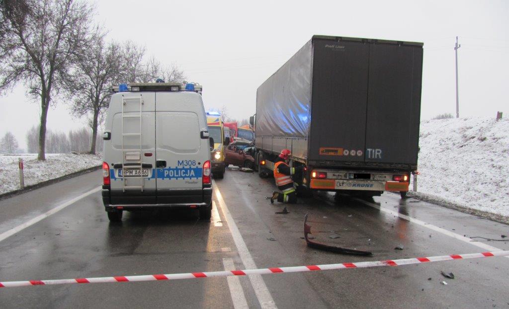 Droga w miejscu wypadku jest zablokowana. Na miejscu wciąż pracują strażacy i policjanci, którzy szczegółowo wyjaśniają okoliczności tragedii. Kierowcy muszą liczyć się z poważnymi utrudnieniami.