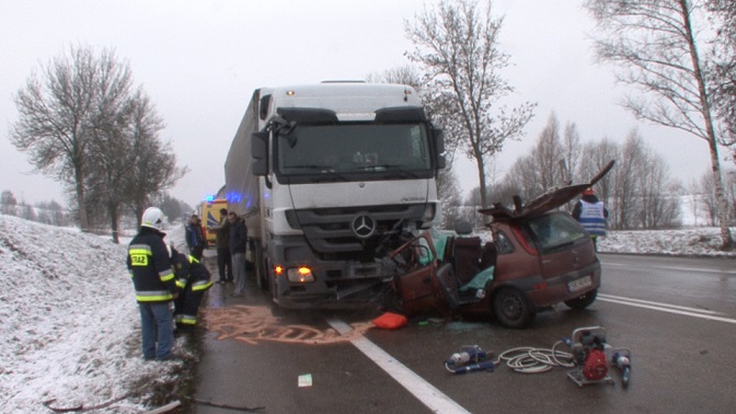 - Samochód osobowy na katowickich numerach rejestracyjnych zderzył się z litewską ciężarówką. Dwie kobiety w wieku 46 i 48-lat podróżujące oplem corsą zginęły na miejscu. Strażacy musieli rozcinać samochód za pomocą specjalistycznych narzędzi. Kierowca ciężarówki nie odniósł poważniejszych obrażeń - mówi kapitan Anna Dworak-Petrikas, rzecznik prasowy suwalskiej straży pożarnej.