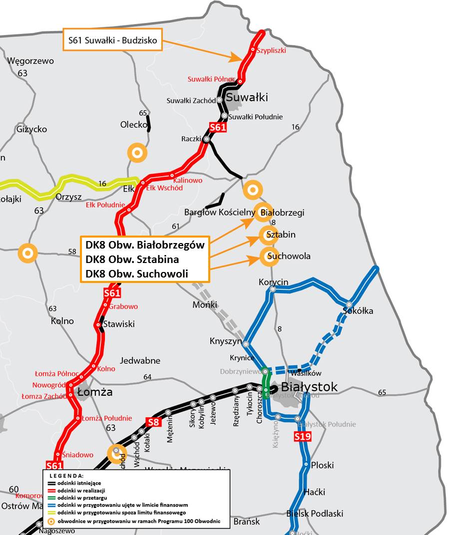 Zadania te zostaÅ‚y ujÄ™te w Programie budowy 100 obwodnic. W ramach inwestycji powstanÄ… nowe odcinki drogi klasy GP (gÅ‚ównej o ruchu przyspieszonym) w ciÄ…gu drogi krajowej nr 8 o łącznej dÅ‚ugoÅ›ci prawie 25 km.