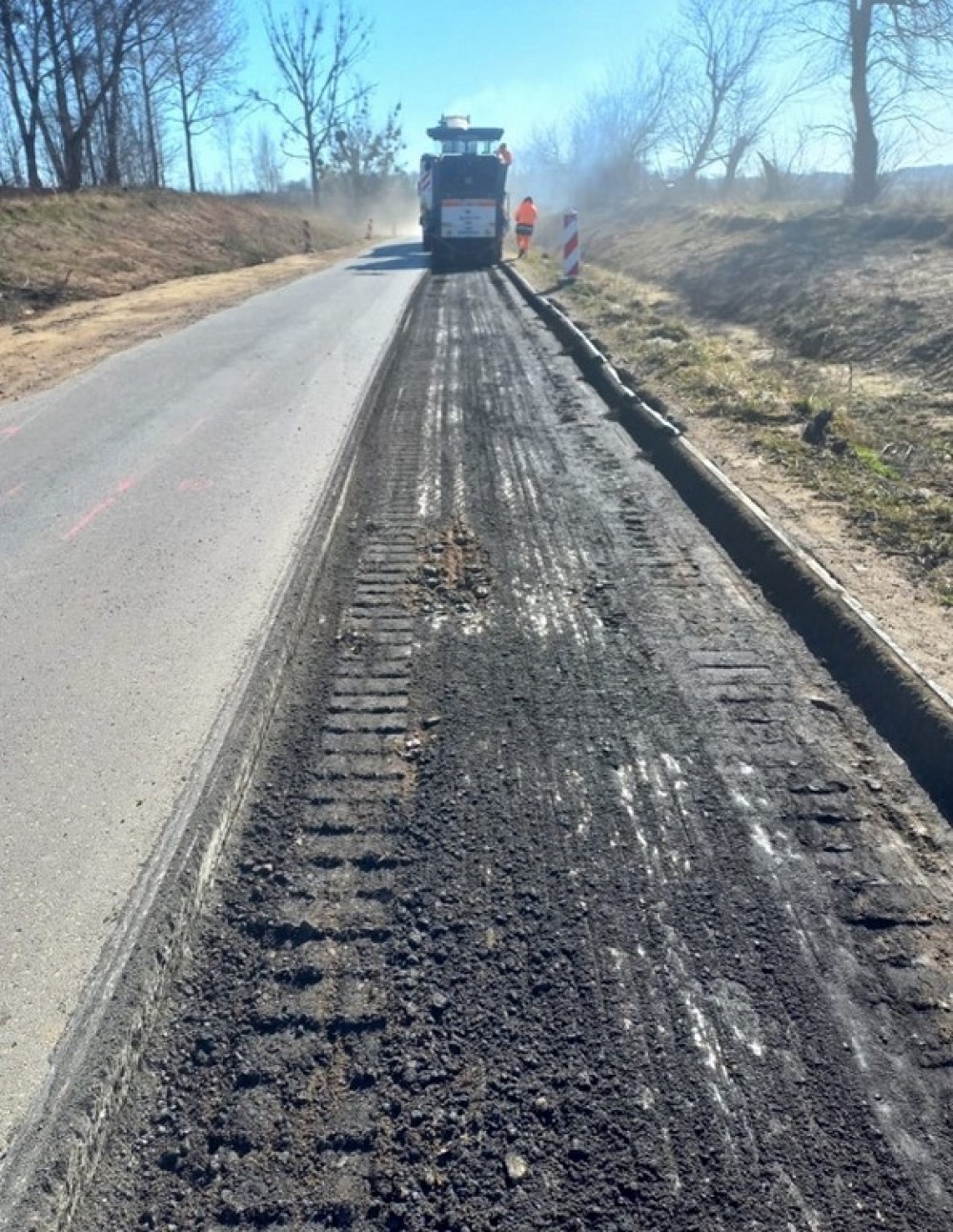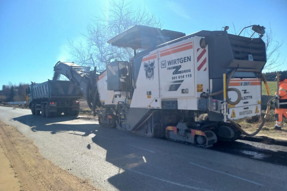 W niektórych miejscach trwa rozbiórka betonu asfaltowego i podbudowy z kruszywa. W innych widać już nowy asfalt.