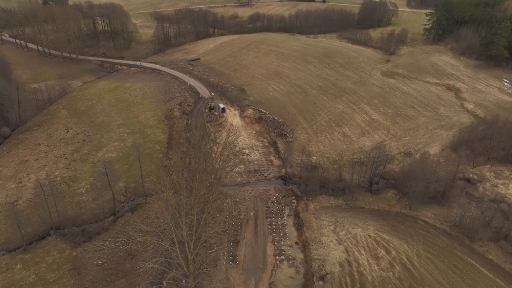 Kilkanaście ujęć z drona, wykonanych przez Zarząd Dróg Wojewódzkich w Olsztynie pozwala zobaczyć skalę inwestycji i detale, które z poziomu ziemi często umykają. To wyjątkowe spojrzenie pokazuje, jak krok po kroku powstaje nowa infrastruktura, wpisując się w otaczający krajobraz.