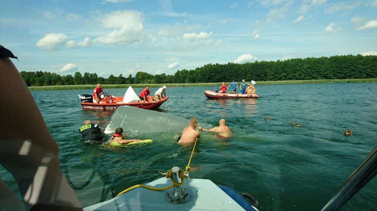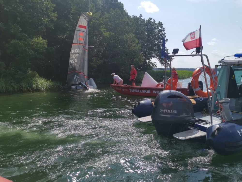 Policyjni wodniacy i ratownicy suwalskiego Wodnego Ochotniczego Pogotowia Ratunkowego pomogli turystom na jeziorze Wigry. Trzy jachty żaglowe wywróciły się, a ich załogi wpadły do wody.