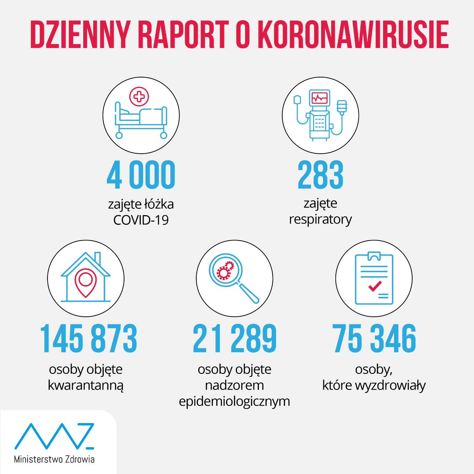 Wyzdrowiało kolejnych 17 osób (w sumie 1430): dwóch mężczyzn z powiatu białostockiego, kobieta z powiatu łomżyńskiego, trzy kobiety i dwóch mężczyzn z powiatu wysokomazowieckiego, sześć kobiet i dwóch mężczyzn z powiatu augustowskiego, kobieta z powiatu sejneńskiego.