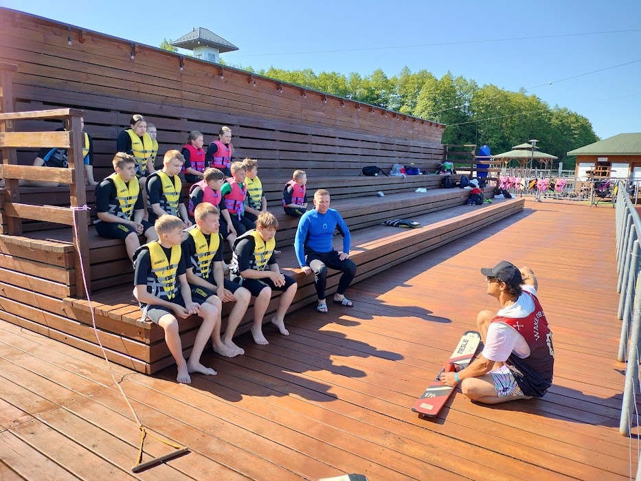 - KontynuujÄ…c projekt, w sezonie letnim rozpoczÄ™liÅ›my naukÄ™ jazdy na nartach wodnych. To dyscyplina sportowa z dawkÄ… adrenaliny i dreszczykiem emocji. Jest popularnÄ… formÄ… letniej aktywnoÅ›ci polegajÄ…cÄ… na jeździe na jednej lub dwóch nartach po wodzie na elektrycznym wyciÄ…gu narciarskim Wojewódzkiego OÅ›rodka Sportu i Rekreacji w Szelmencie, który umożliwia jazdÄ™ po torze o dÅ‚ugoÅ›ci 1 000 metrów.