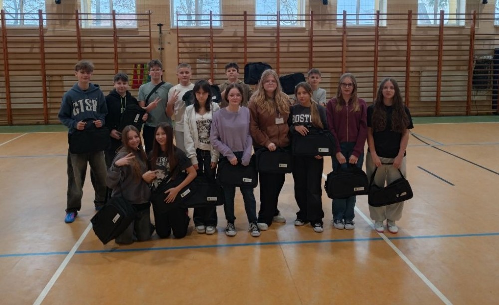 Uczestnicy zajęć zostali obdarowani gadżetami w postaci bidonów, saszetek sportowych oraz toreb ekologicznych.