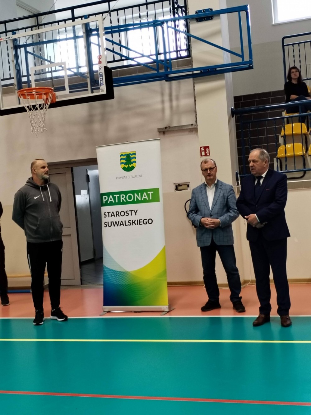 Turniej uroczycie otworzyli Andrzej Szymulewski, Wicestarosta Suwalski i Marek Cieśluk Dyrektor Szkoły Podstawowej im. św. Jana Pawła II w Raczkach.