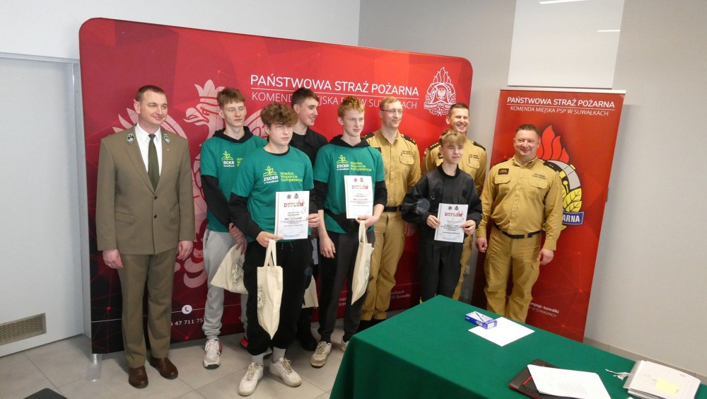 Zwycięzcom turnieju pogratulowali: Komendant Miejski PSP w Suwałkach mł. bryg. Jerzy Netter oraz Zastępca Nadleśniczego Nadleśnictwa Suwałki Pan Hubert Maślak, którzy wręczyli nagrody i dyplomy wszystkim uczestnikom.