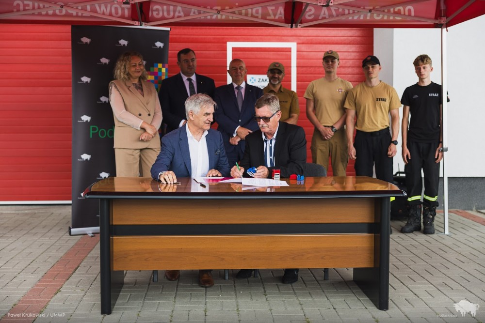 Przedstawiciele władz województwa odwiedzili kolejne powiaty, by podpisać umowy z samorządowcami na dofinansowanie jednostek OSP na ich terenie. W piątek takie spotkania odbyły się w Suchowoli i Goniądzu, a w piątek w Augustowie. Przypomnijmy, że dotacje to podziękowanie za udział strażaków ochotników w gaszeniu pożaru w Biebrzańskim Parku Narodowym, jaki wybuchł podczas tegorocznej Wielkanocy.