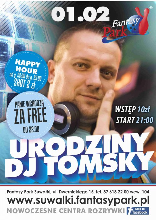 Już w najbliższą sobotę, 1 lutego, znany i lubiany DJ Tomsky będzie obchodził swoje urodziny w Fantasy Park Suwałki.