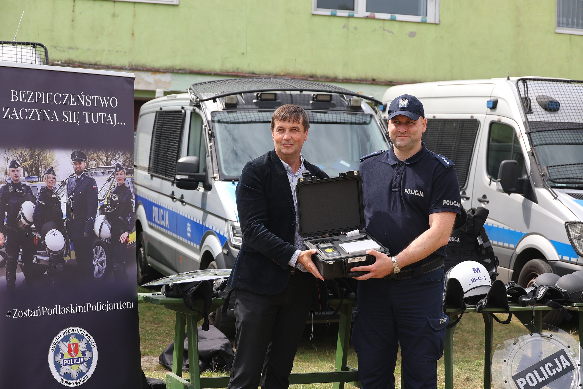 Nowy alkomat Alcosensor zakupiony ze środków gminnych przekazał suwalskim Policjantom Krzysztof Andrzej Gwaj, zastępca wójta gminy Suwałki.