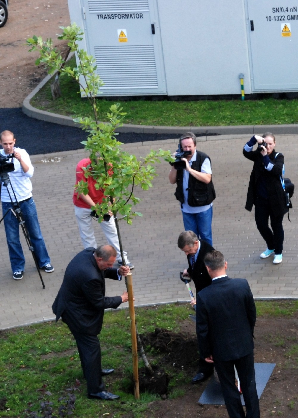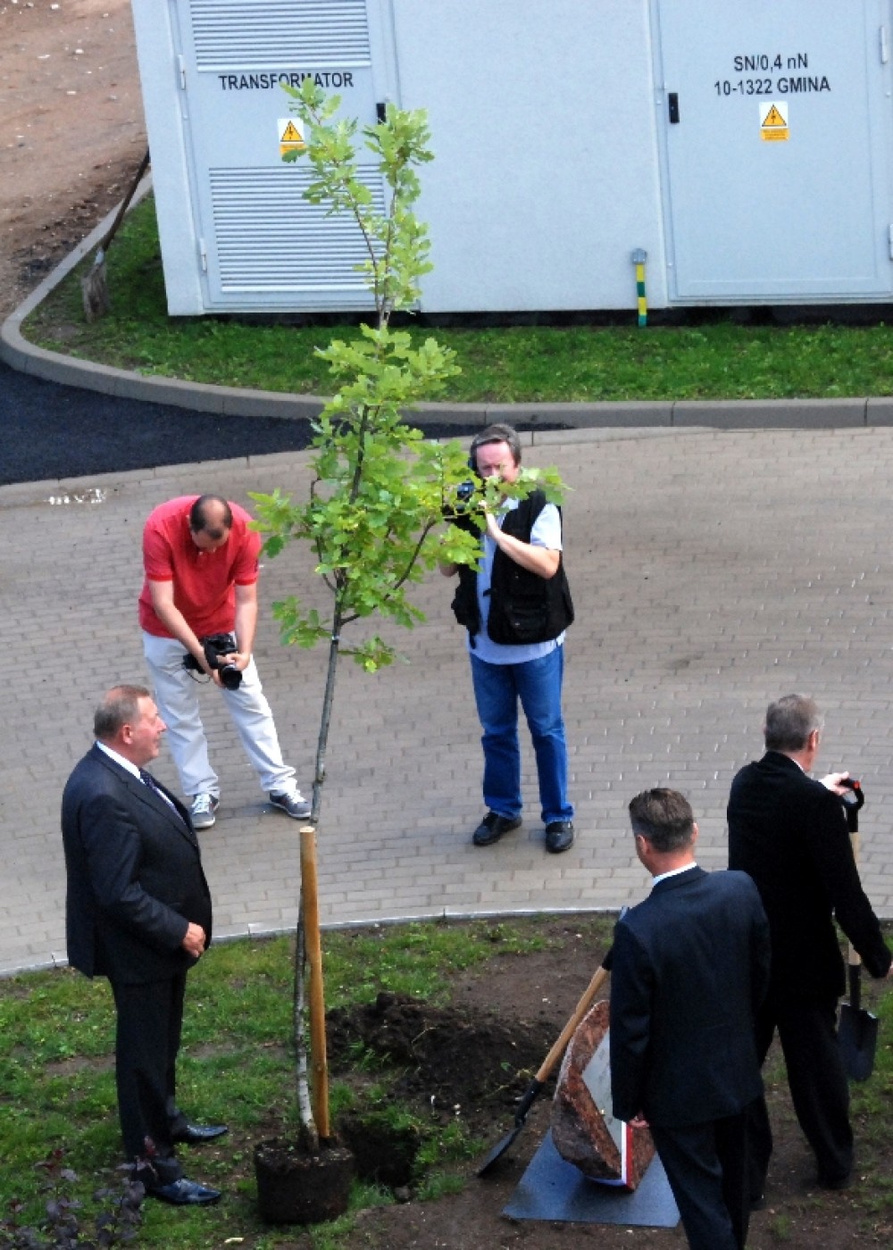 Uroczystość miaÅ‚a skromny charakter, a jej patriotycznym elementem byÅ‚o posadzenie dÄ™bu upamiÄ™tniajÄ…cego: 75 rocznicÄ™ powstania Polskiego PaÅ„stwa Podziemnego, 25 rocznicÄ™ pierwszych wolnych, demokratycznych wyborów w Polsce oraz oddanie do użytku siedziby UrzÄ™du Gminy. ModlitwÄ™ w intencji pracowników i petentów odmówiÅ‚ oraz poÅ›wiÄ™cenia budynku dokonaÅ‚ ks. Krzysztof KaczyÅ„ski.