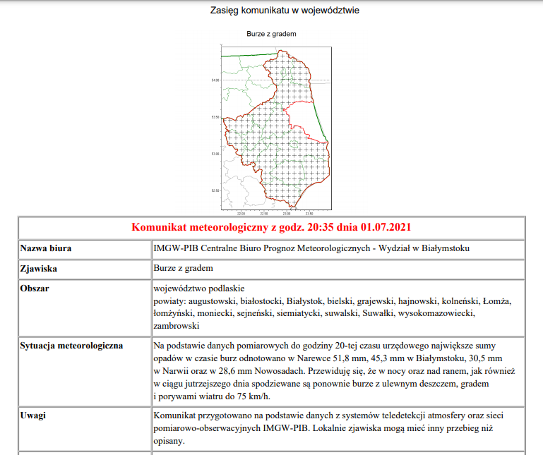 Białostockie biuro prognoz IMGW-PIB przewidywało wcześniej, że burze w naszym regionie zakończą się nad ranem. Teraz nie wyklucza, że towarzyszyć nam będą także w piątek.