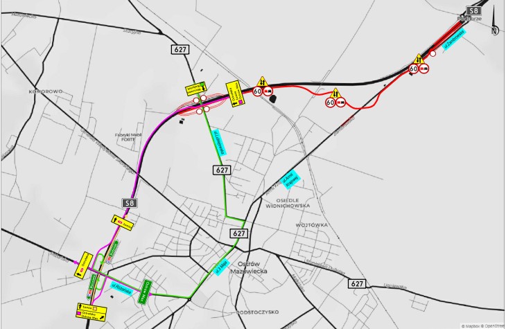 Zmiana organizacji ruchu na węźle Ostrów Mazowiecka Północ. Źródło: GDDKiA