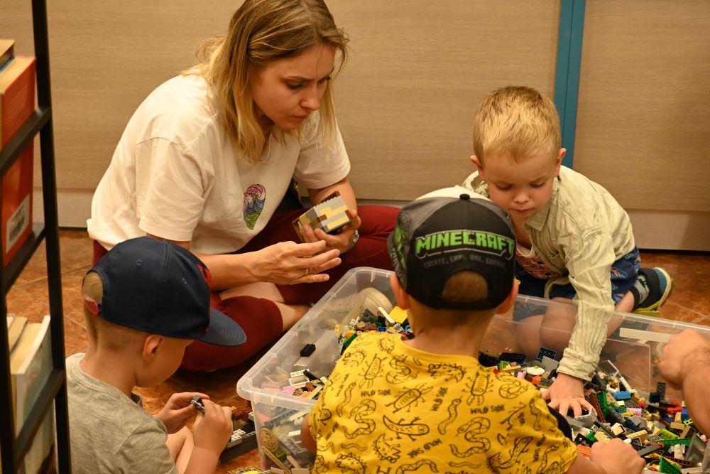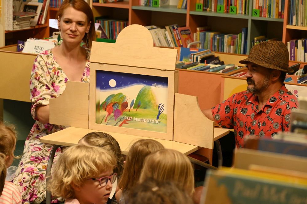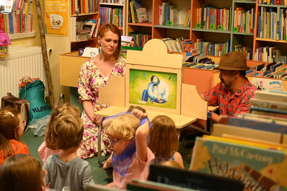 Równolegle odbywało się „Czytanie na dywanie". Kolorowe chusty, bajkowa atmosfera i teatrzyk kamishibai sprawiły, że dzieci z zaciekawieniem słuchały opowieści.