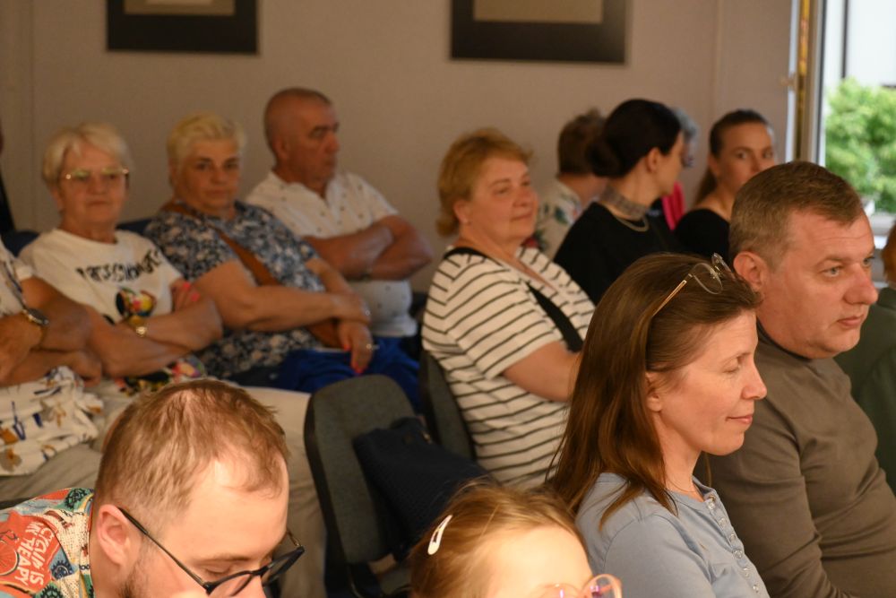 Następnie autorka wystawy „Skrawki i ścinki" Urszula Łozińska opowiedziała o swojej twórczości. Wystawę nadal można podziwiać w Galerii „Na Schodach".
