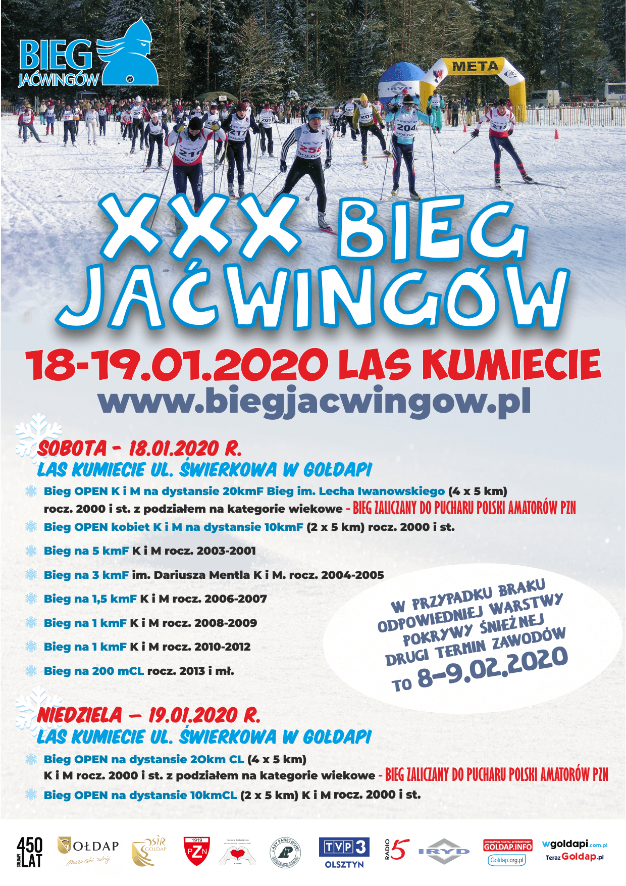 - Liczymy na odpowiednio zimowe warunki i liczne przybycie sympatyków narciarstwa do GoÅ‚dapi, by wziąć udziaÅ‚ w tym wyjÄ…tkowym wydarzeniu. Organizatorzy informujÄ… również, że od XXX Edycji Biegu Jaćwingów zawody rozgrywane na dystansie 20 km stylem dowolnym bÄ™dÄ… nosiÅ‚y nazwÄ™ Lecha Iwanowskiego, inicjatora Biegu Jaćwingów, który odszedÅ‚ od nas we wrzeÅ›niu 2019 r. - glosi komunikat.