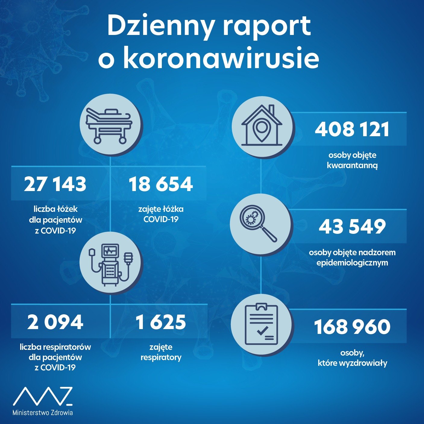 Ministerstwo Zdrowia poinformowało o 24 692 nowych i potwierdzonych przypadkach zakażenia koronawirusem z województw:
