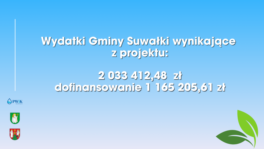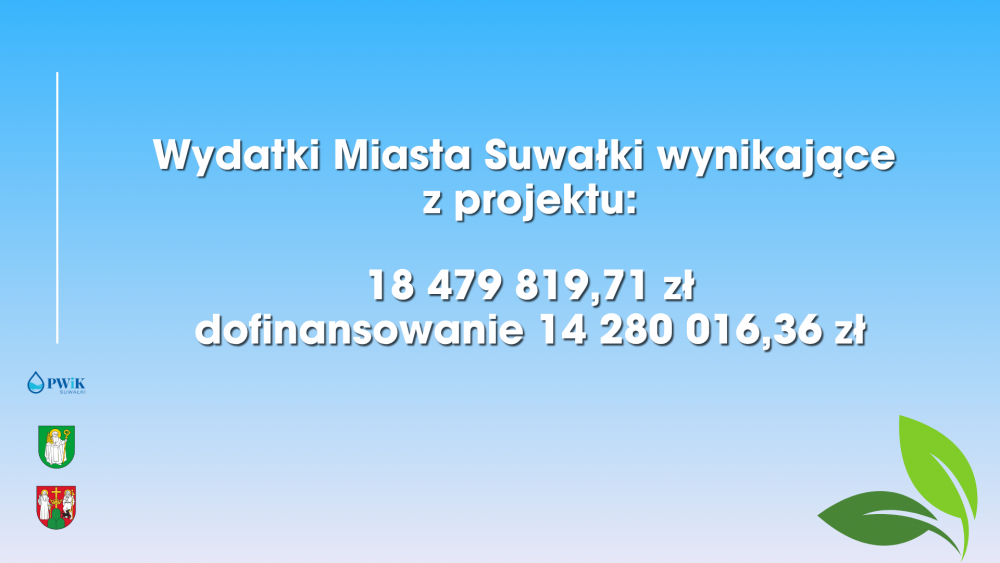 Na ten projekt zagwarantowane są pieniądze z Funduszy Europejskich dla Podlaskiego w ramach Zintegrowanych Inwestycji Terytorialnych miasta oraz gminy Suwałki. O przedsięwzięciu opowiadali prezydent Suwałk Czesław Renkiewicz, pełniący funkcję wójta gminy Suwałki Krzysztof Andrzej Gwaj oraz prezes Przedsiębiorstwa Wodociągów i Kanalizacji Łukasz Kurzyna.