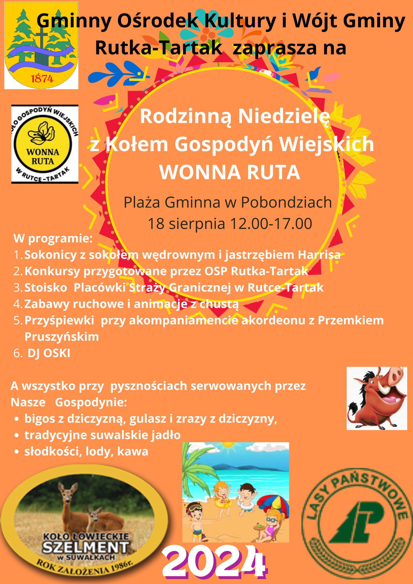 Wójt Rutki-Tartak, Gminny OÅ›rodek Kultury i KoÅ‚o GospodyÅ„ Wiejskich Wonna Ruta zapraszajÄ… wszystkich chÄ™tnych nad jezioro Pobondzie na Piknik Rodzinny.